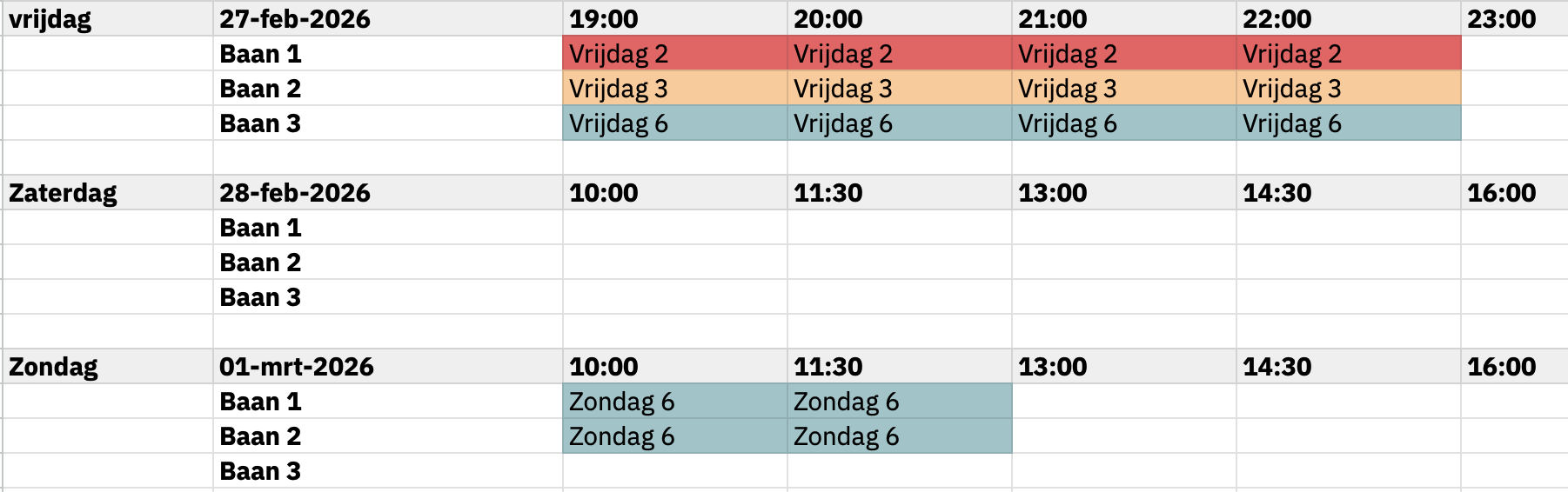 Baanschema's komend weekend